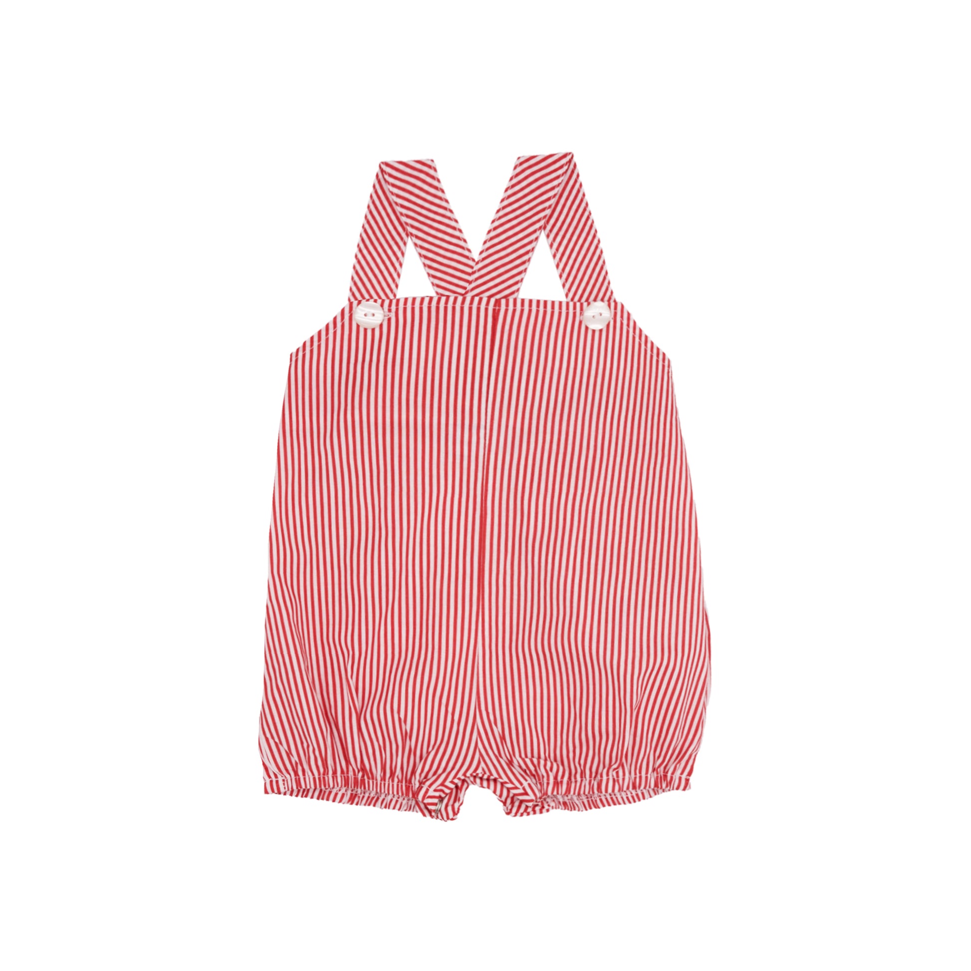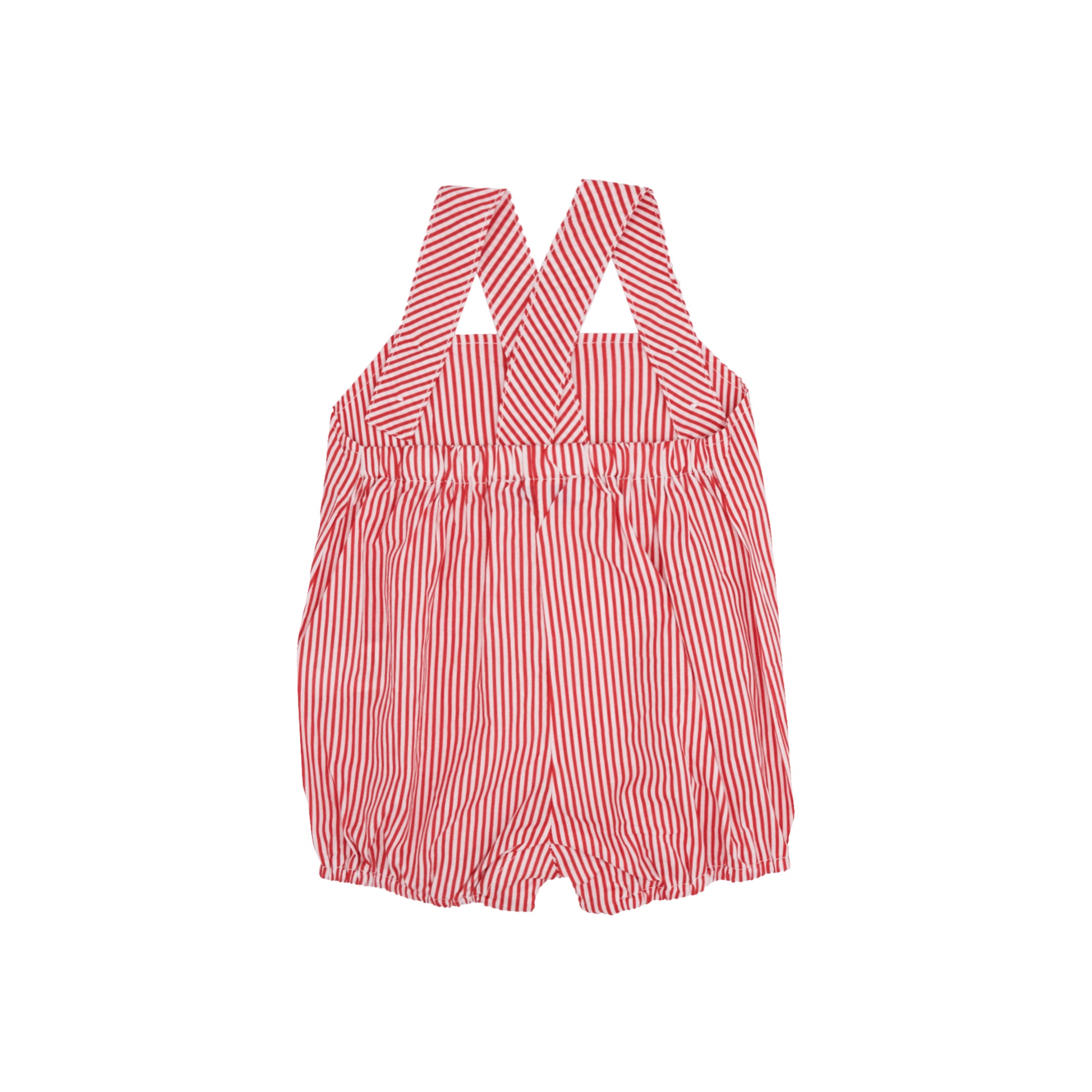 Made from extra soft 100% cotton, the Beatrice Romper Stripes Red is designed with comfort and movement in mind. The charming cross-back straps fasten with mother-of-pearl buttons and feature an extra button for adjusting the fit as your baby grows. An elasticated back ensures a snug and flexible fit, while the roomy cut allows for all-day play.