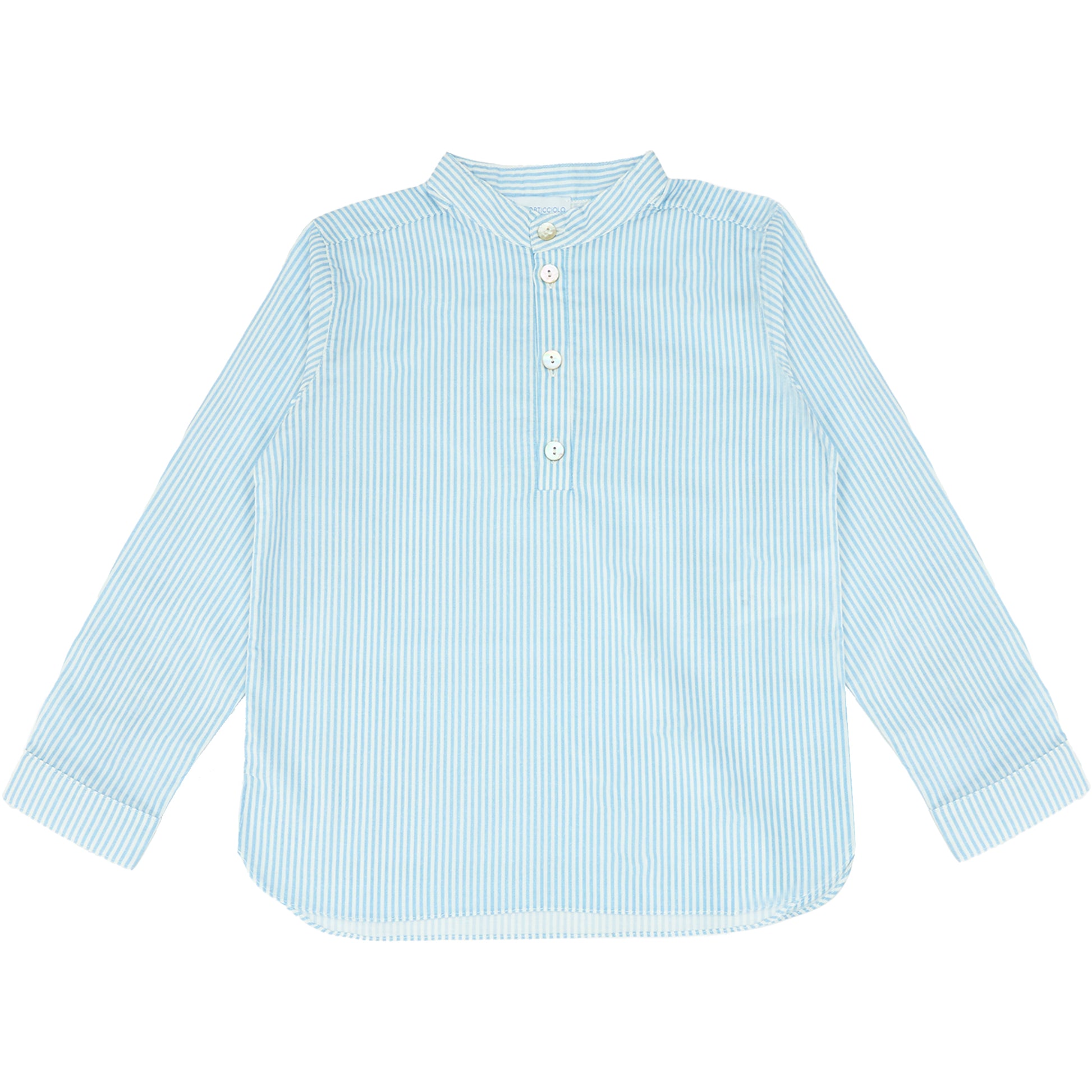 Designed with comfort and elegance in mind, it boasts long sleeves with button cuffs and a rounded hem, allowing it to be worn tucked in or loose for a more relaxed look. A wardrobe essential for boys who like to dress with quiet confidence, especially when paired with the coordinated pieces from the Mare Collection – from baby salopette to sundresses and matching accessories.