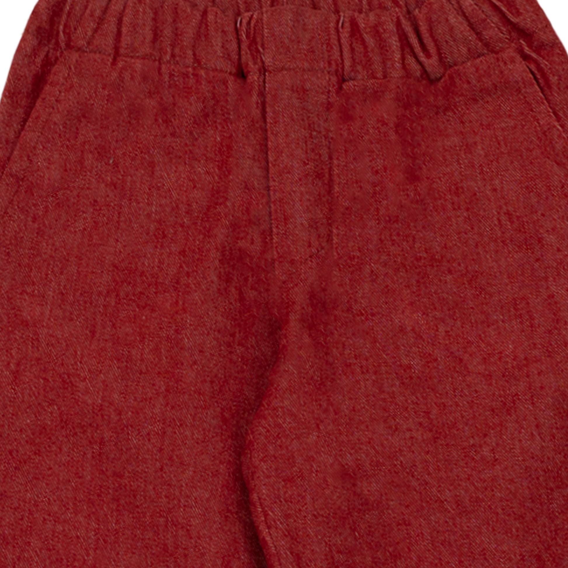 Complete your child’s wardrobe with our Unisex Trousers Jeans in Red, crafted from 100% cotton denim for a perfect balance of comfort and durability. Designed with a soft elastic waistband, these trousers ensure effortless wear, making them ideal for quick changes and all-day ease. The breathable denim fabric provides a relaxed fit, allowing freedom of movement while maintaining a classic and stylish look.